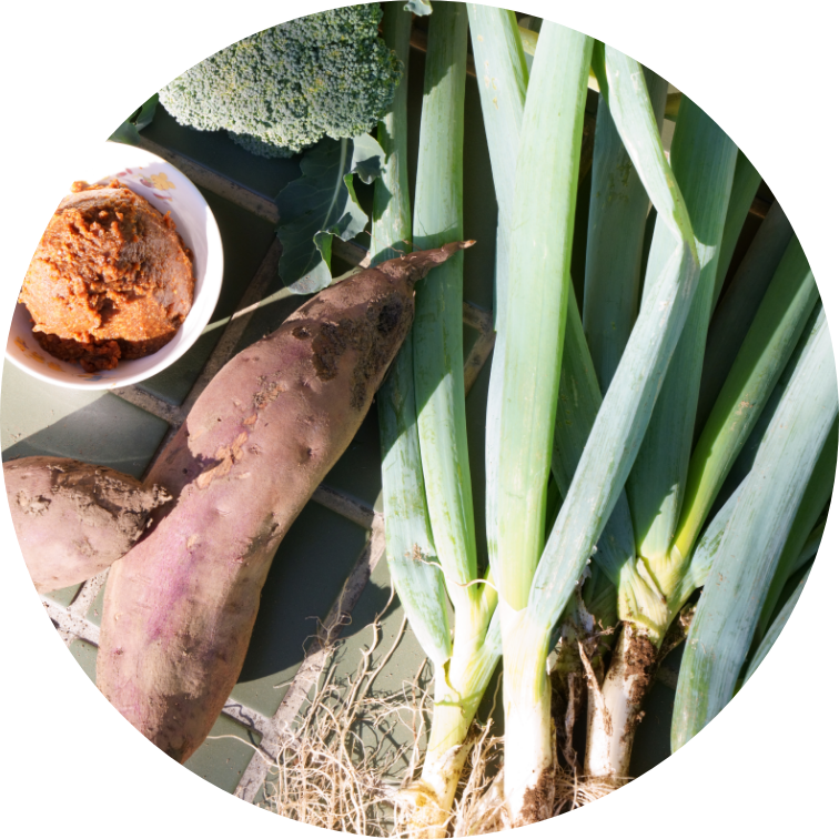 園の味噌は手仕込みの味噌です。こどもたちと1年使う分の味噌を仕込みます。麹の香りがつよい風味ある味噌汁が自慢です。