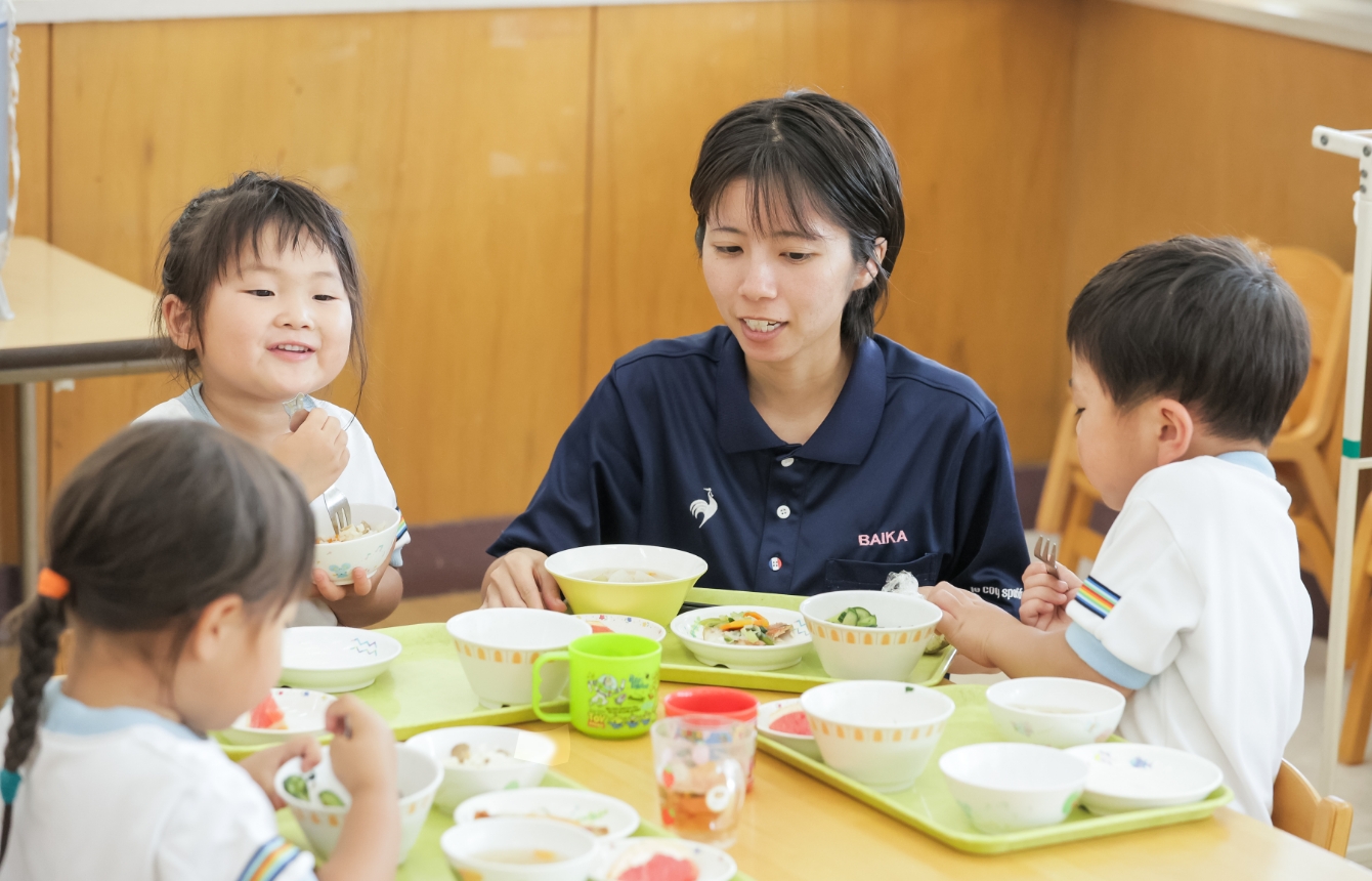 地産地消をこころがけ、こどもにとって安心で安全な給食を手づくりで提供しています。食べるだけではなく、育てる・収穫する・調理するという、食をめぐる体験を通して、こどもたちの生きる力をはぐくみます。
