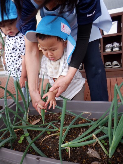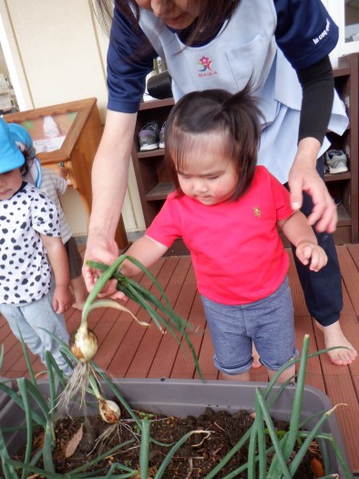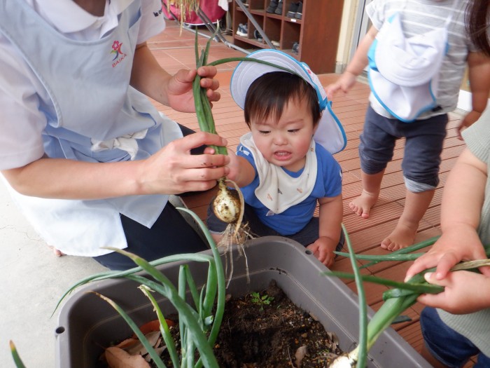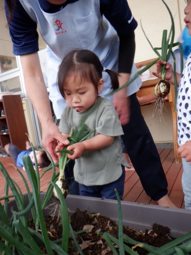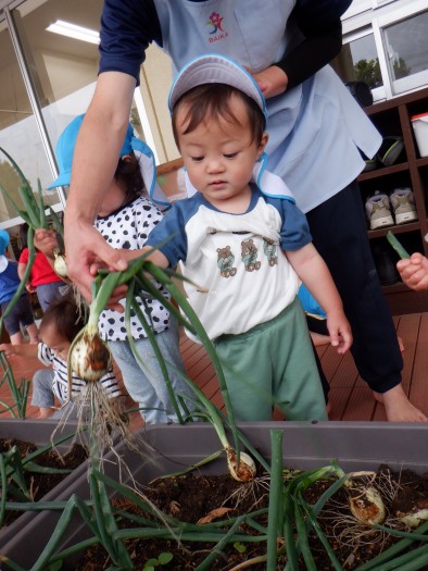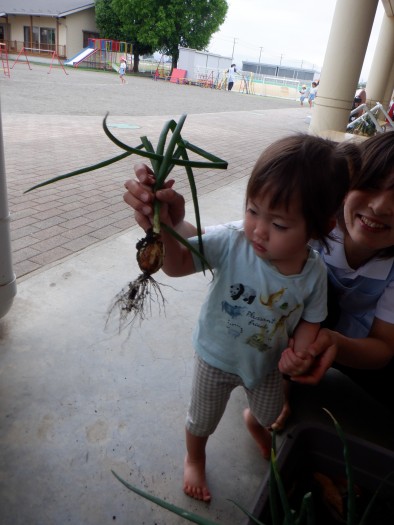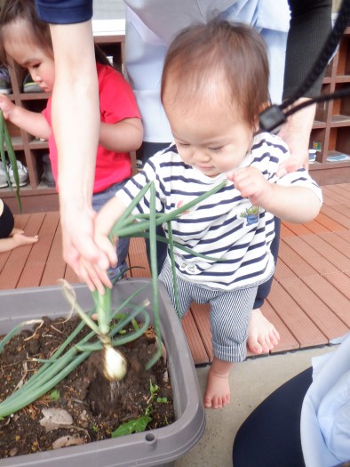 抜いた玉ねぎを匂いを嗅いだり、よーく見て観察していました。