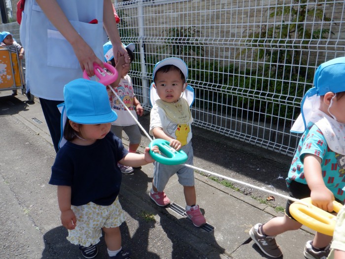 お散歩ロープをもってみんなでお散歩できるようになっていきました。
