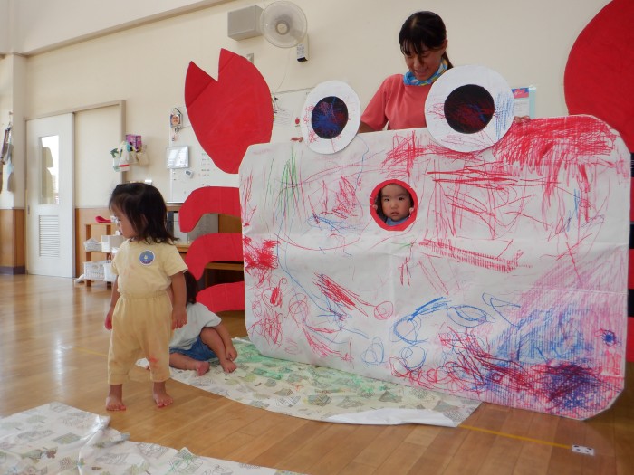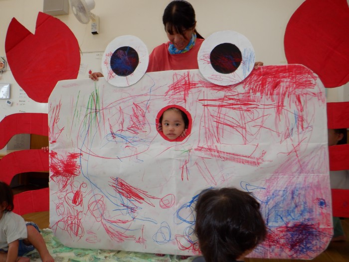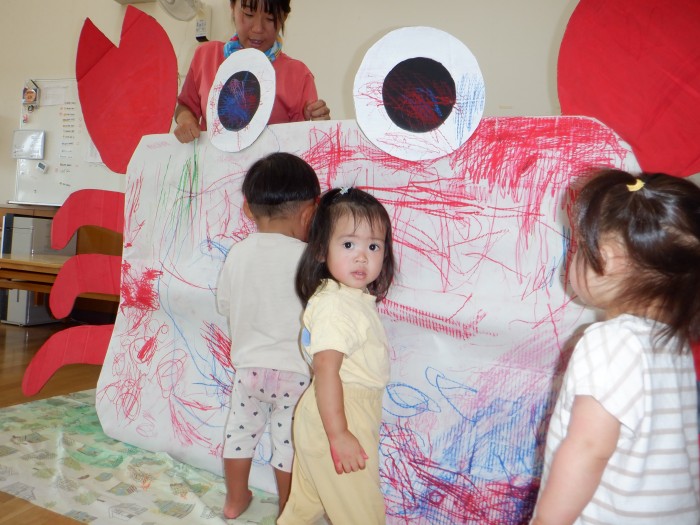 大きなカニをたんぽぽ組のみんなでさらに可愛くしました!
