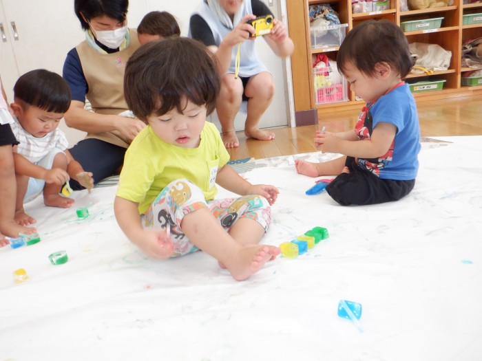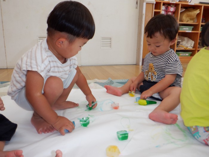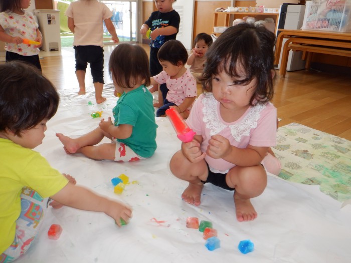 アイスの形の氷をお友達と見せあって楽しんでいる様子が見られました!