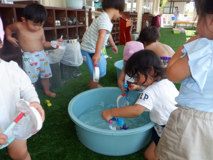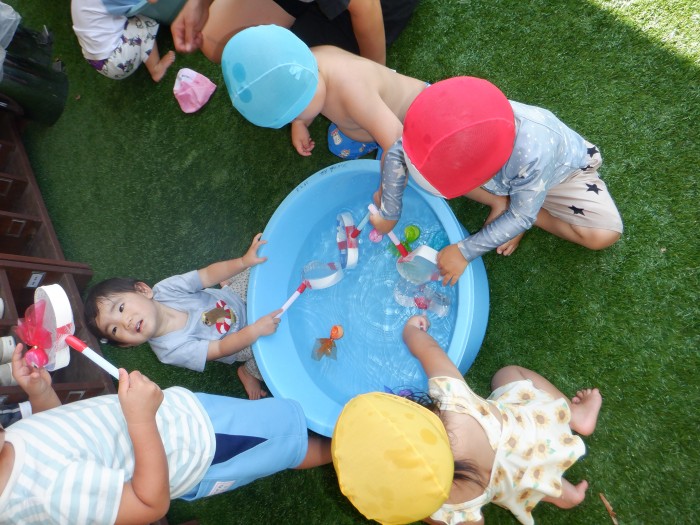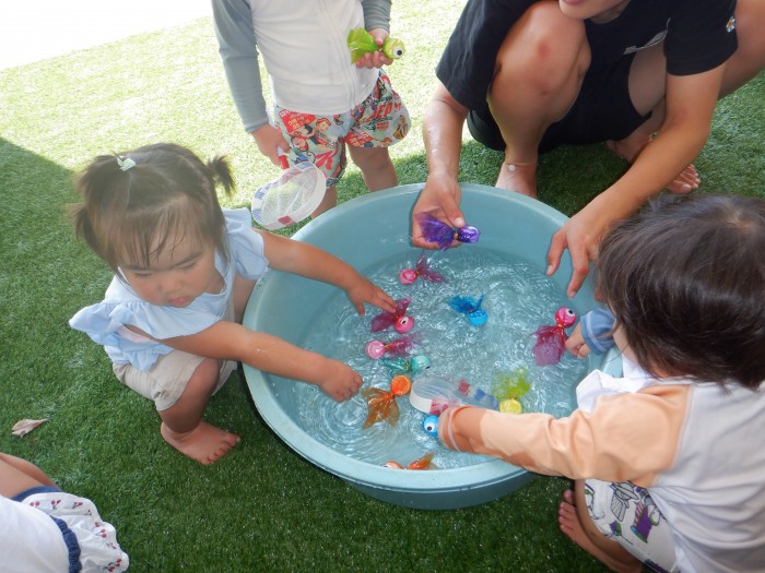金魚を手で触ってみたり、ポイを上手に使って金魚すくいを楽しみました!