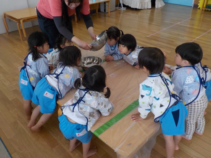 少し水を多めに入れ、ドロドロとした感触を楽しみました。