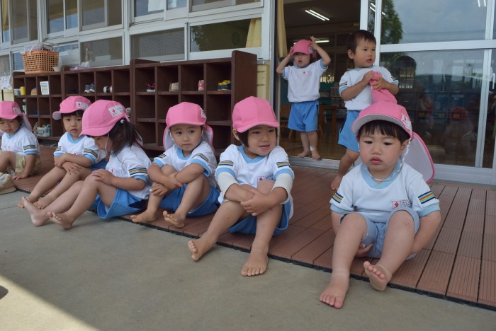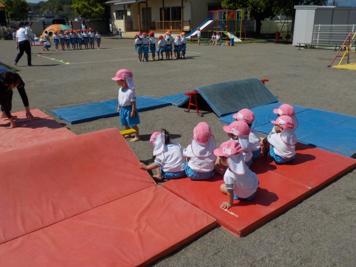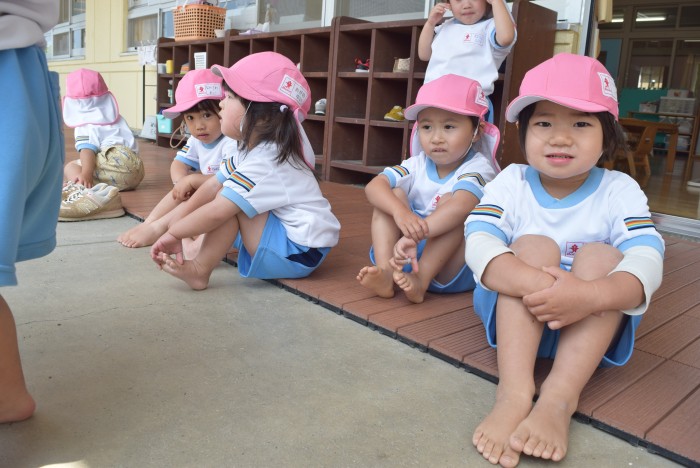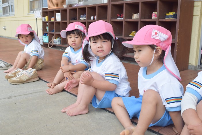 おやま座りがかっこよくできるようになってきたすみれ組さんです。