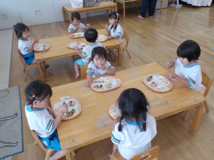 お誕生会の日の給食は、かわいいプレートにのっています。