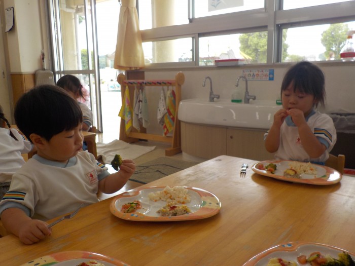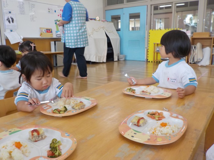それがとっても嬉しかったようで、食べ始める前には「みて!これかわいいよ!」「かわいい!」「キラキラのってる!」とたくさんお話をしていましたが、食べ始めるとお話もせずに夢中で食べていました。