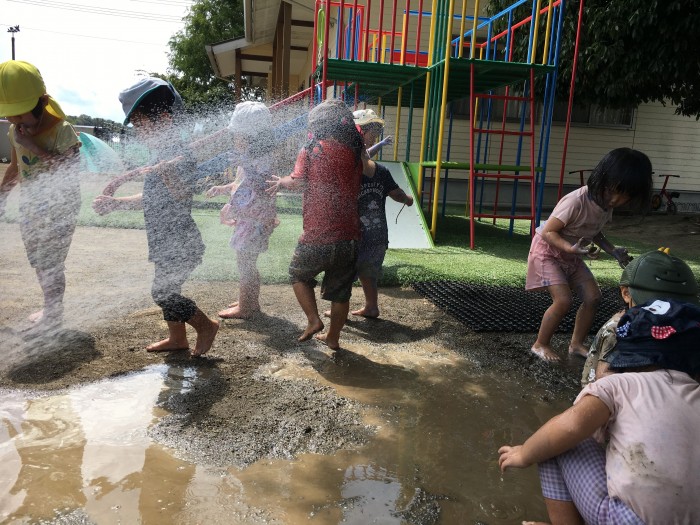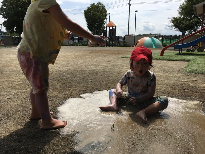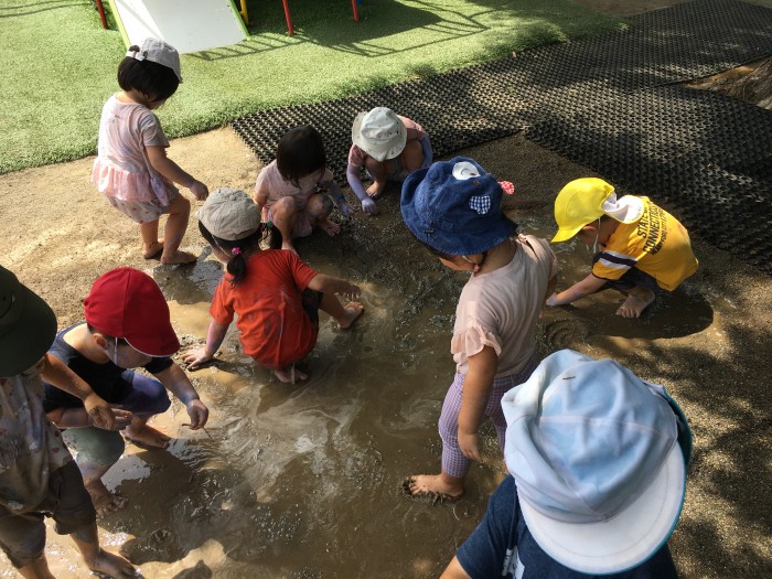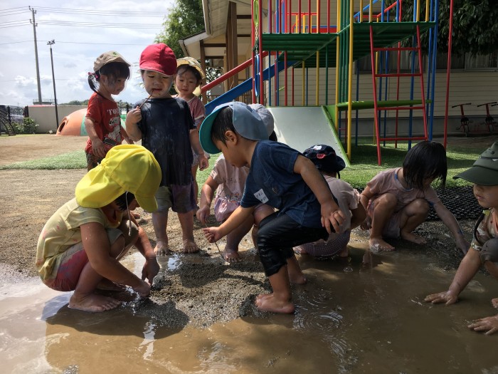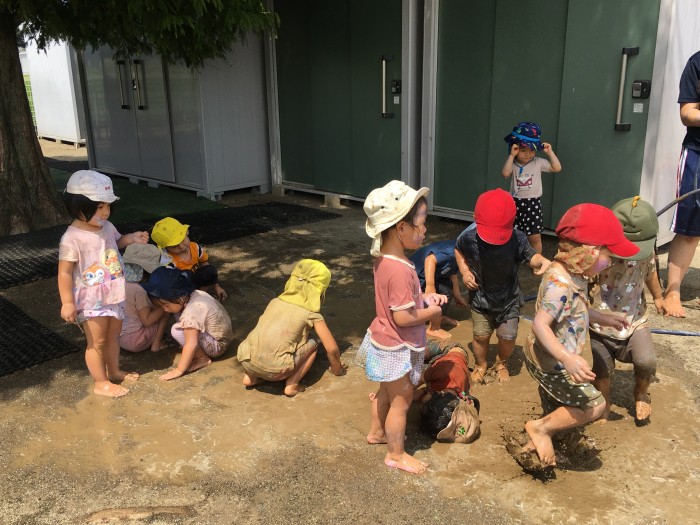 そのあとは、そのまま外に出てどろんこ遊びをしました。
