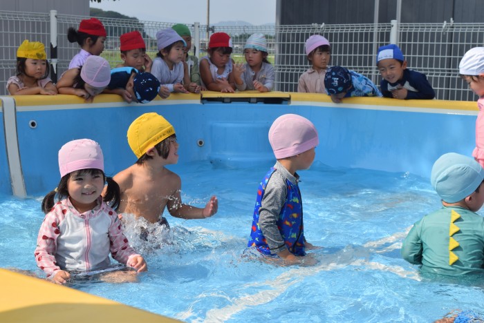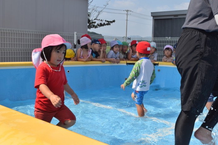 いざ、すみれ組さんがプールに入る番です。
