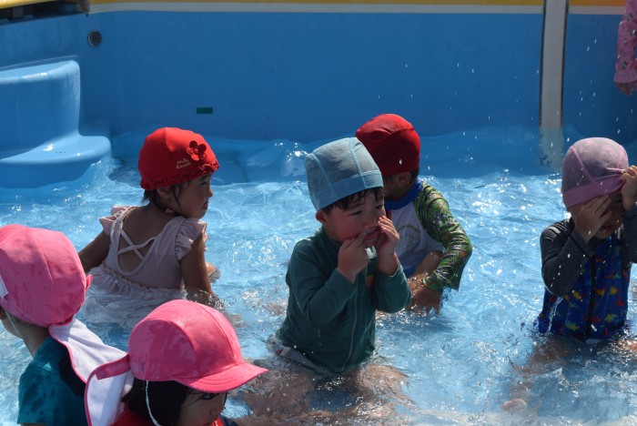 「今日でプールは、おしまい」というお話をすると子ども達からは「なんでー??」「やだー!」「プールはいるー!」と、プール納めすることを残念がる姿が見られました。