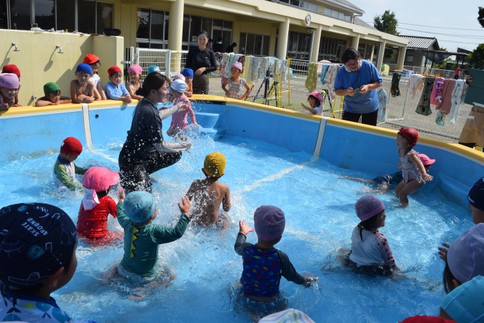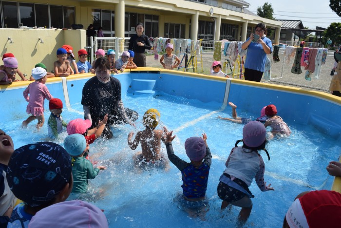 最後は先生とお友だちとお水をバシャバシャたくさんかけあいっこしました。