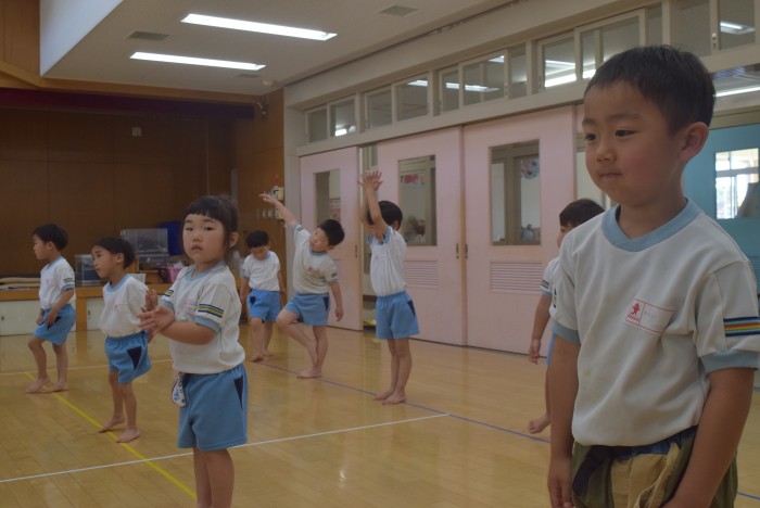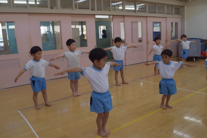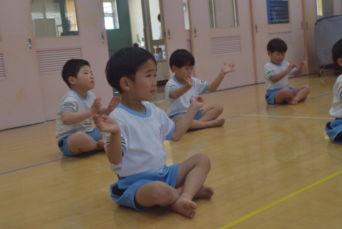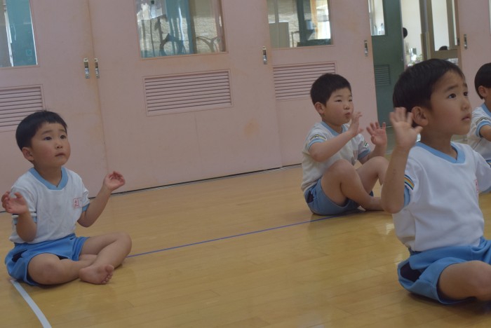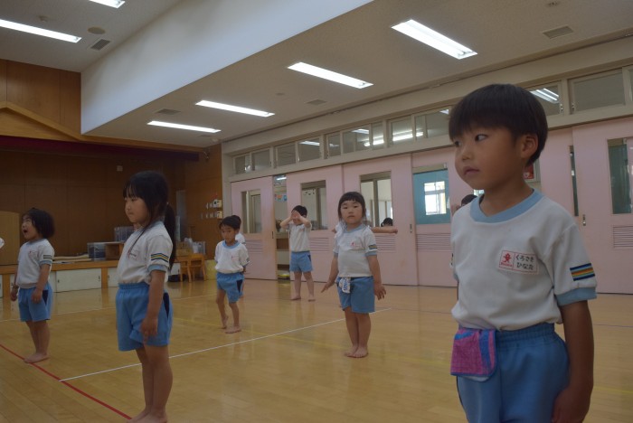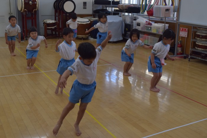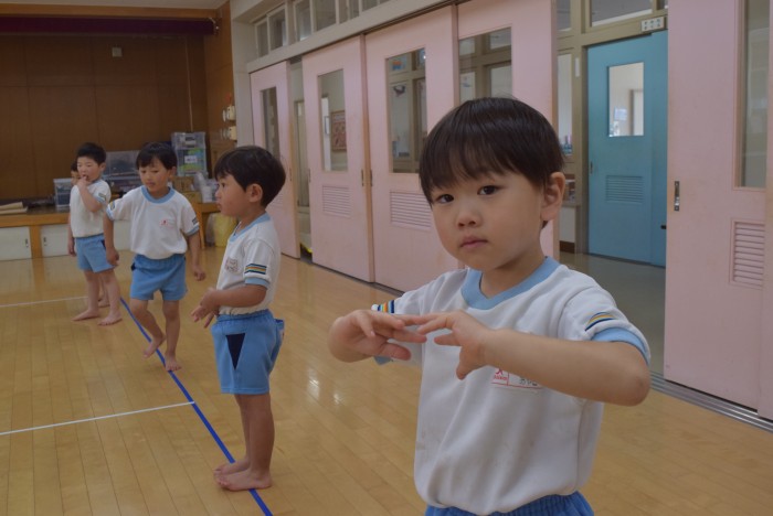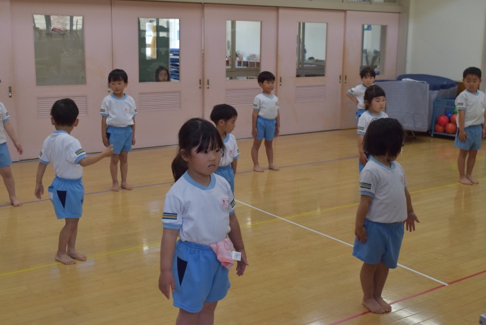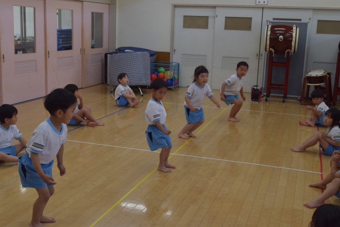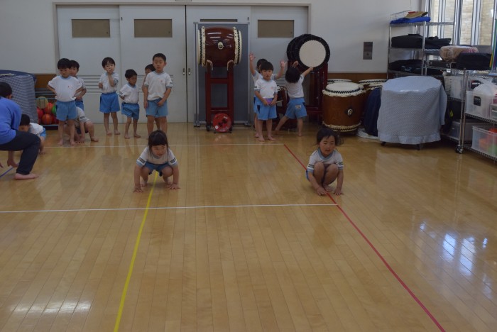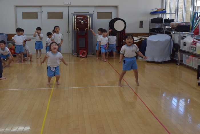きらきら星を歌いながらジャンプをしたりジャンプで線を左右に飛び越えたり、たくさん身体を使って活動を楽しむことができました!