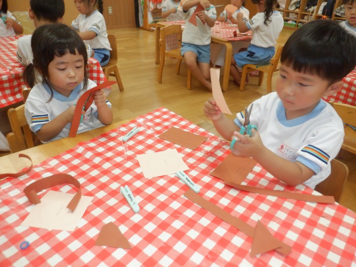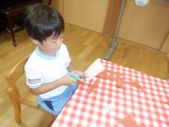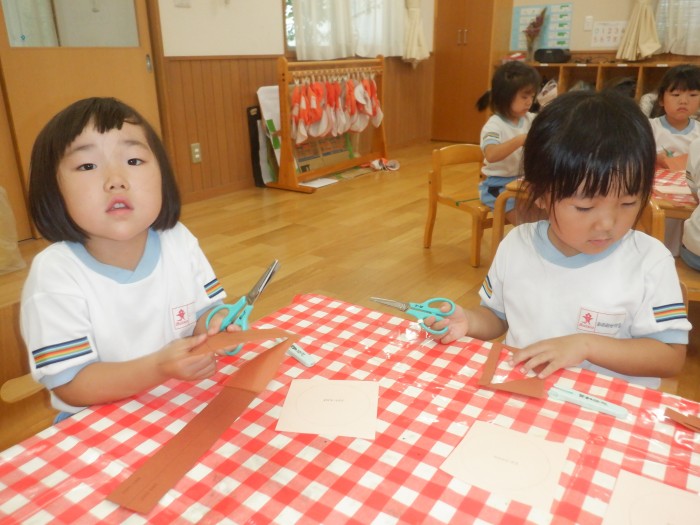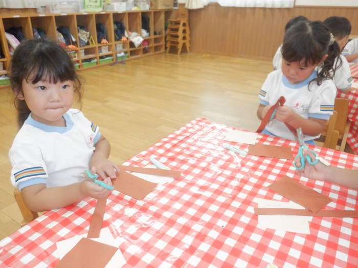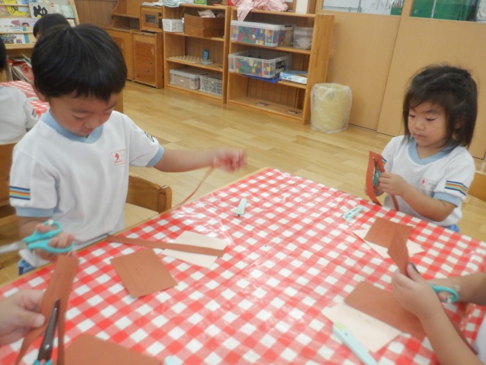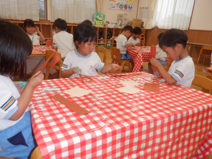 先生の話をよく聞いて、はさみの使い方のお約束もして始めました。