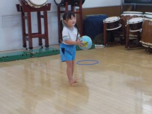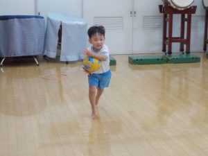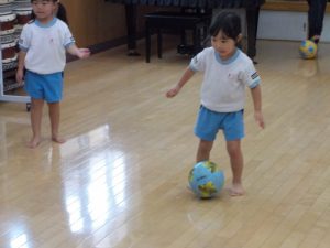 次に転がしたボールを手や足でキャッチ!足でキャッチは難しそうでした。