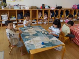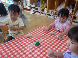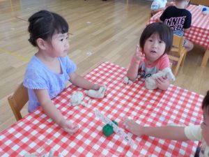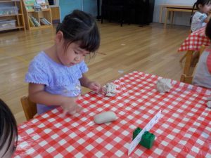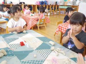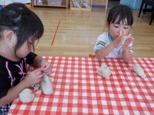 たくさん手を使って粘土を丸めたり伸ばしたりを頑張っています!
