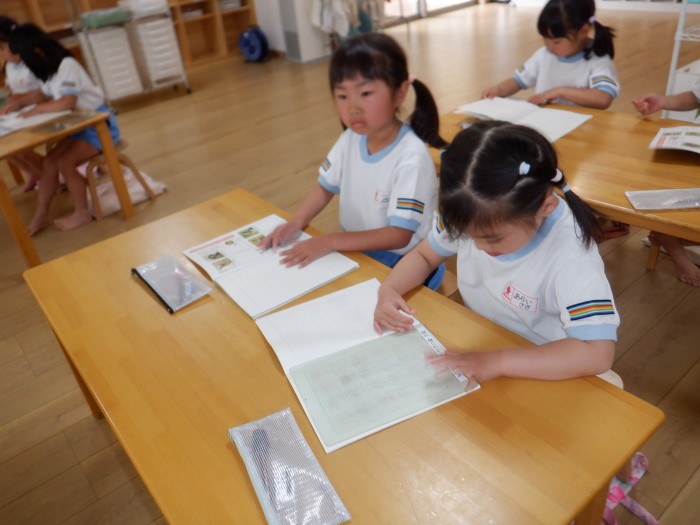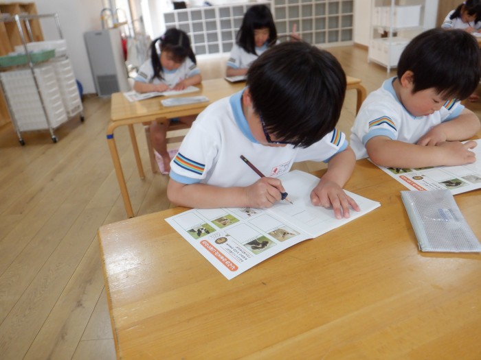 ノートに書けると、「出来た!」と、嬉しそうな子どもたちでした。これからも子どもたちと楽しく文字指導を行っていきます。