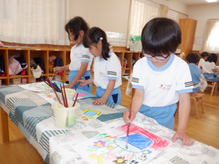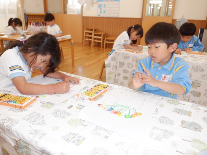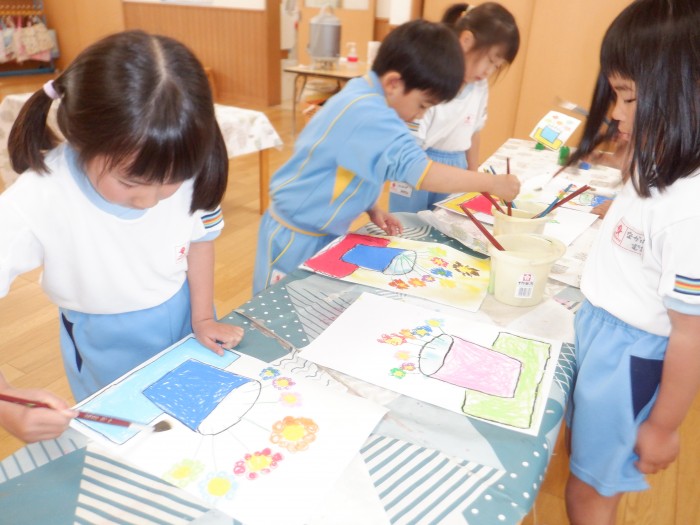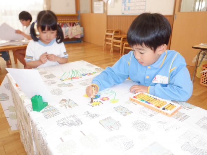 お部屋にある花瓶のお花を見たり、図鑑から本物の花の写真を見ながらみんなで楽しく描くことが出来ました。