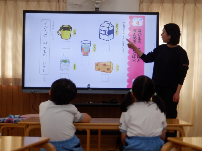 論理では、電子黒板に写して、「なかまのことば」や「まとめることば」を学んでいます。
