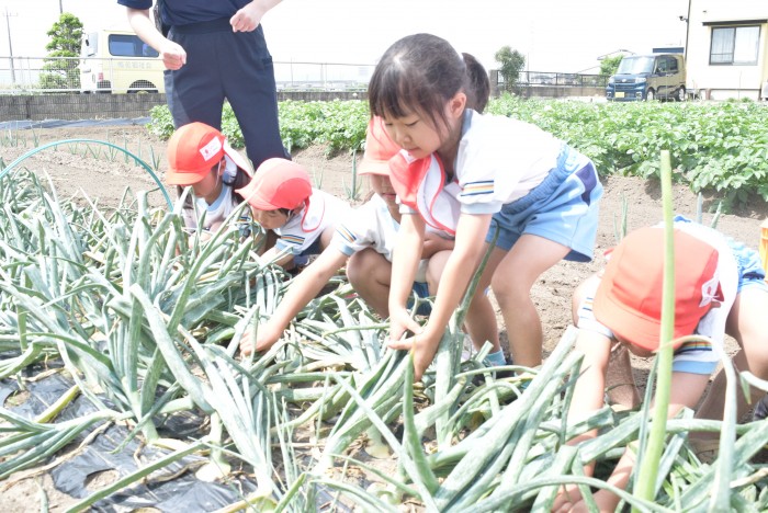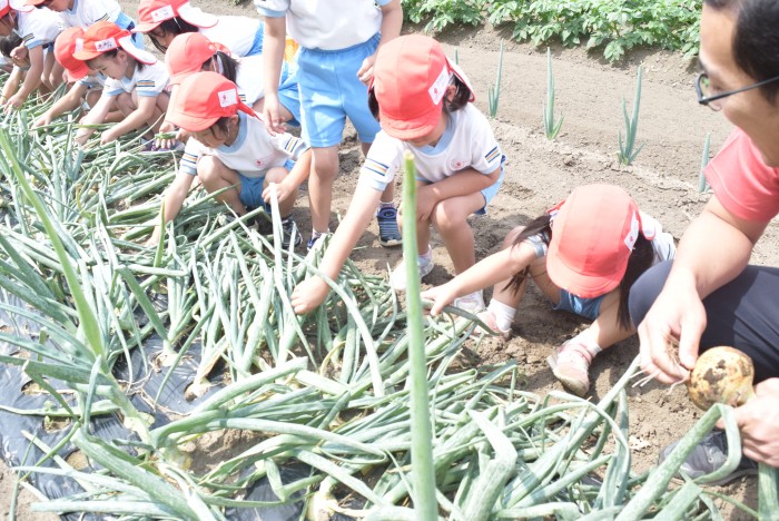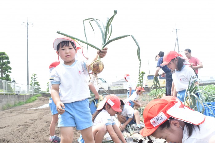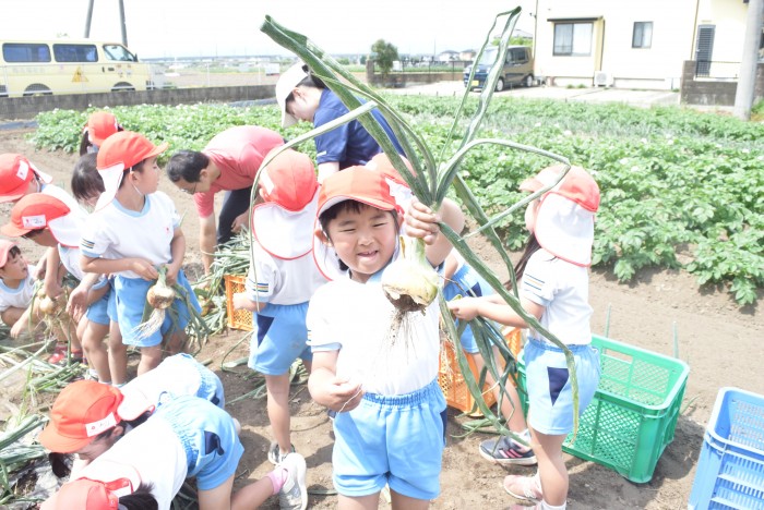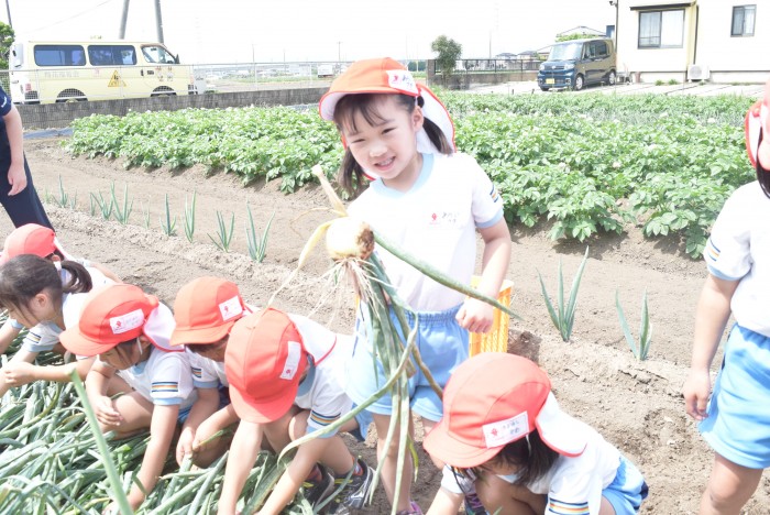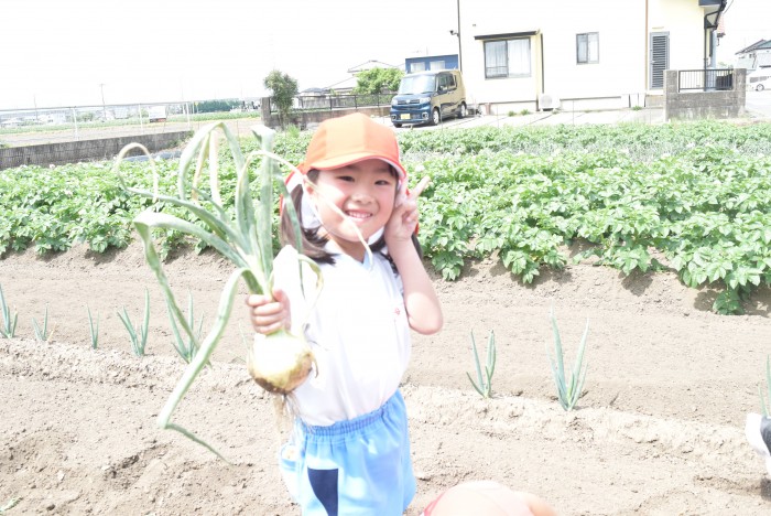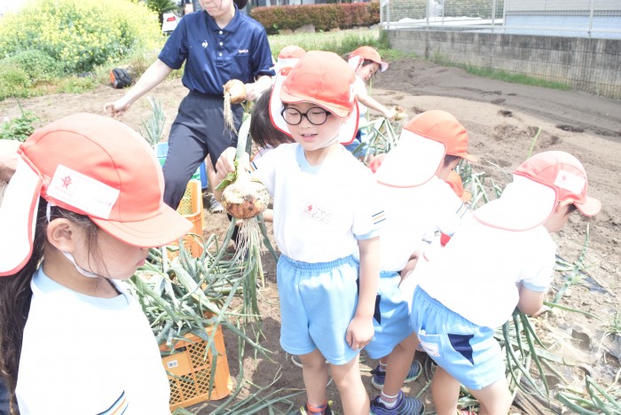 力いっぱい引っ張り、玉ねぎが採れると「やったー!」「大きい!」と、嬉しそうに見せてくれた子どもたちでした。