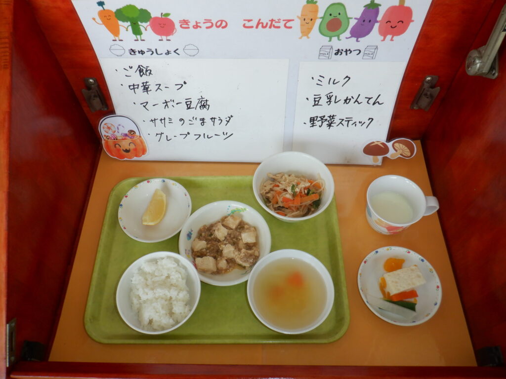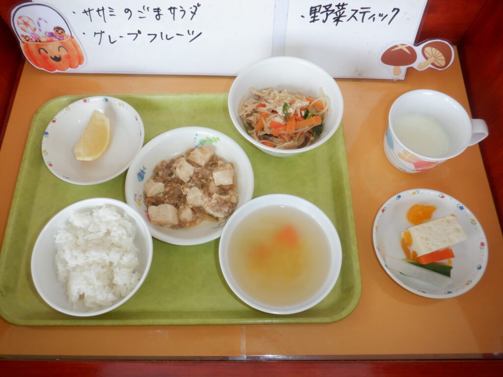 ◎今日の副菜はササミがたっぷり入った、ササミのごまサラダです。