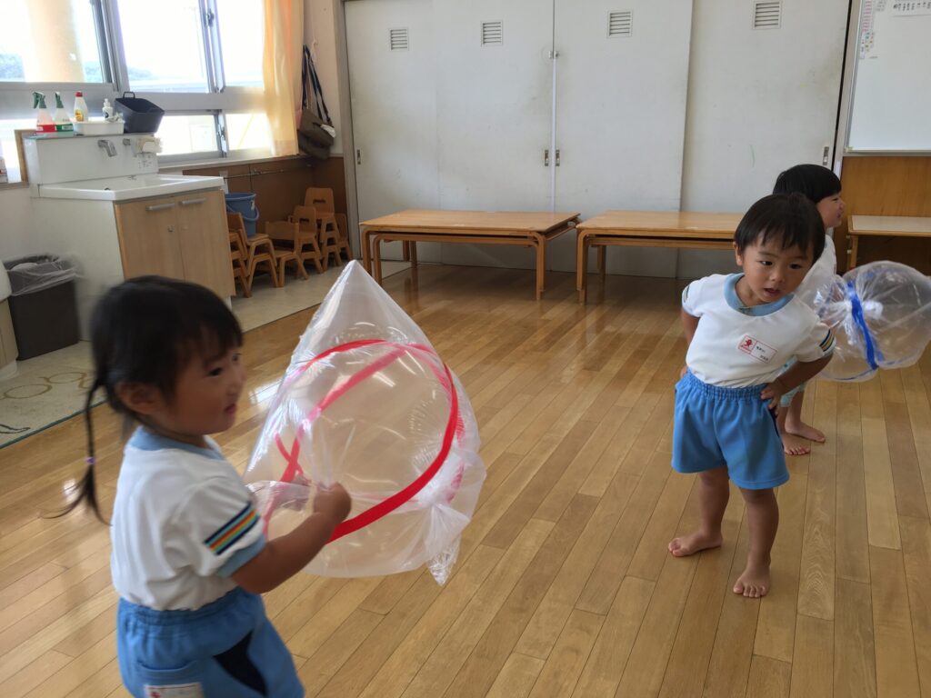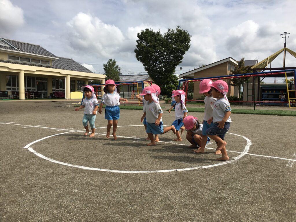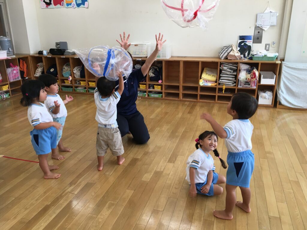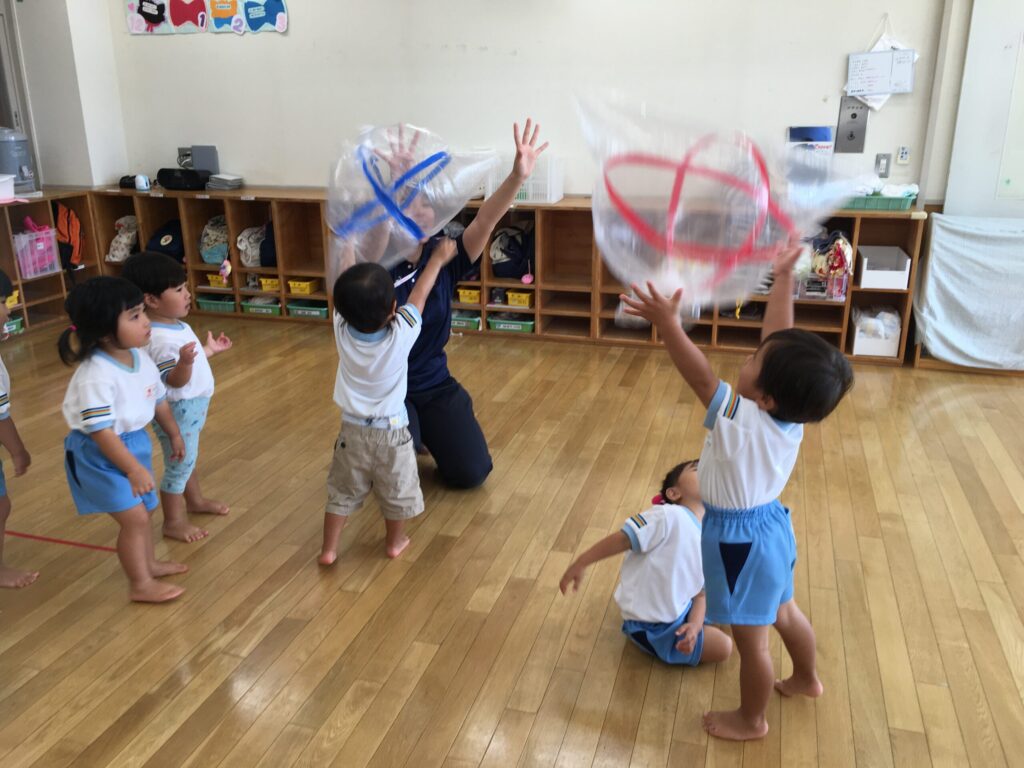 お友だちの名前を呼び「はーい!」とお返事が聞こえてから投げるルールで遊びました。