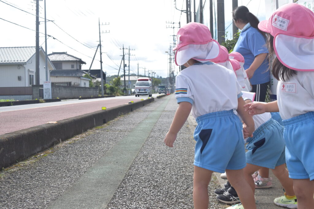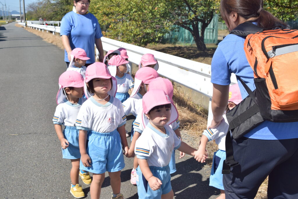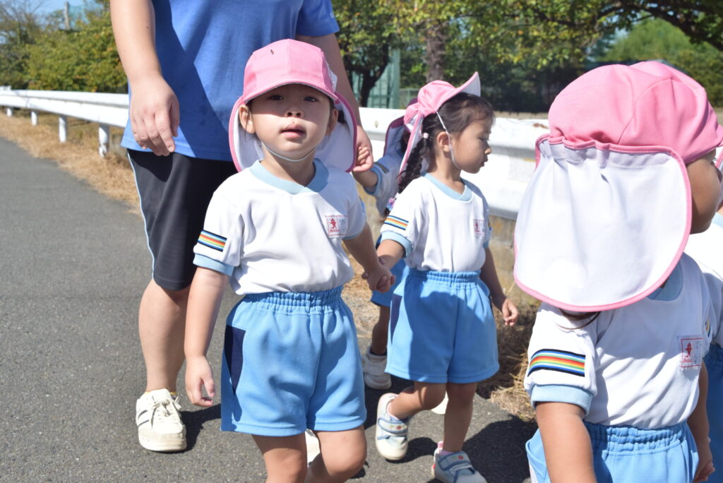 涼しくなってきたので、久しぶりに園外散歩に行きました。お友達と手を繋いで2列で歩くことが以前よりもとても上手になっていて、子ども達の成長をすごく感じました。
