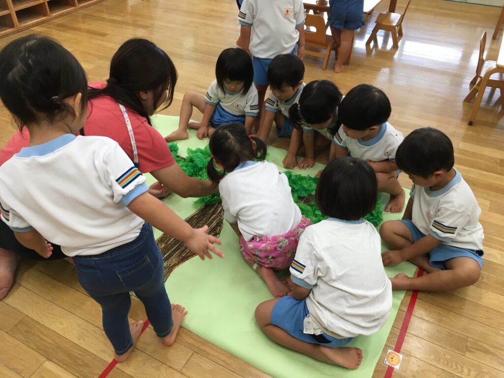 作り始める前に子どもたちに「やさしくってどんなかな」と問いかけると「こうだよ!」とふんわり丸めてみせてくれました。