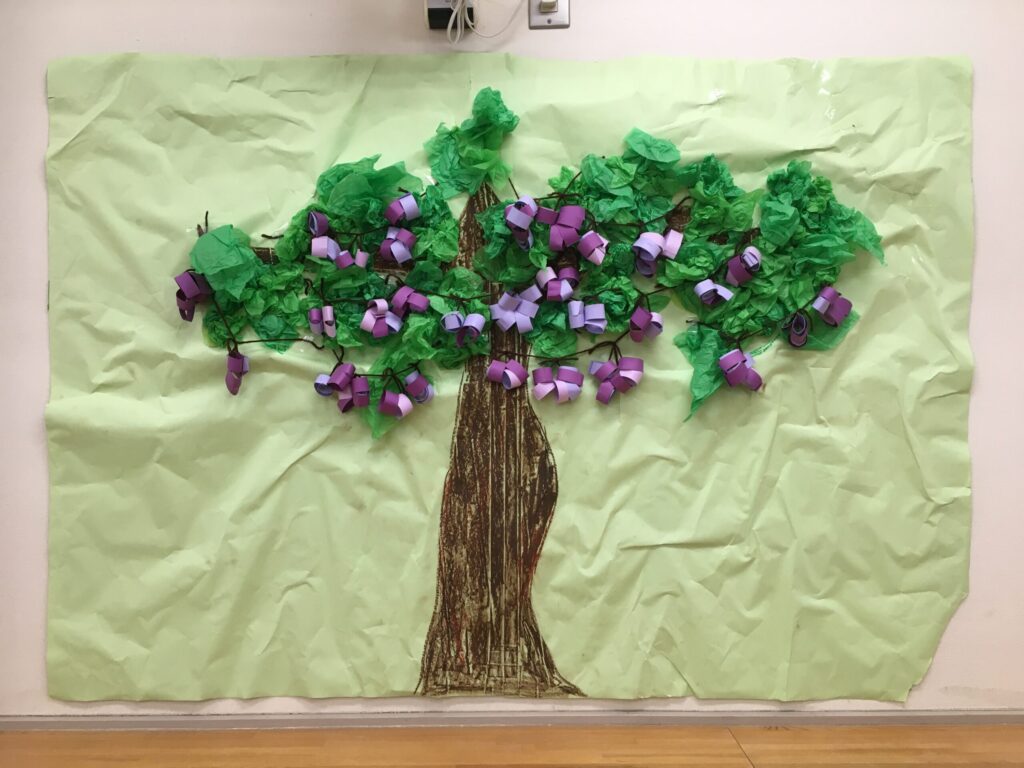 みんなの作った葉っぱを全部貼り付けることができたら、こんなに素敵な木になりました!