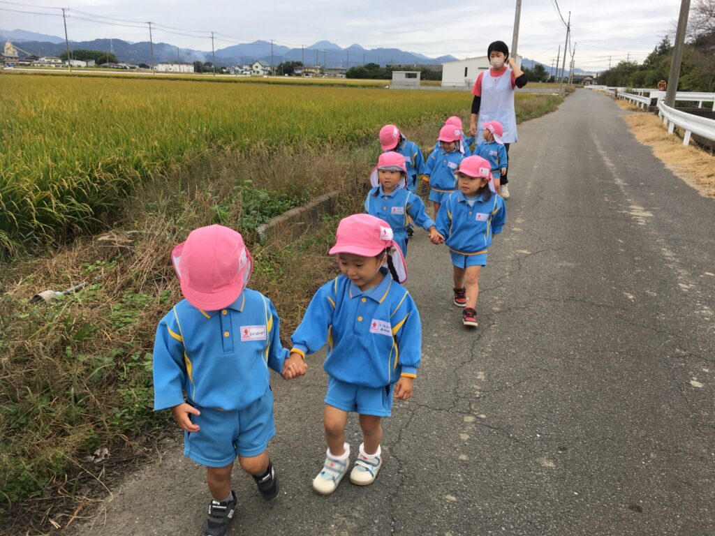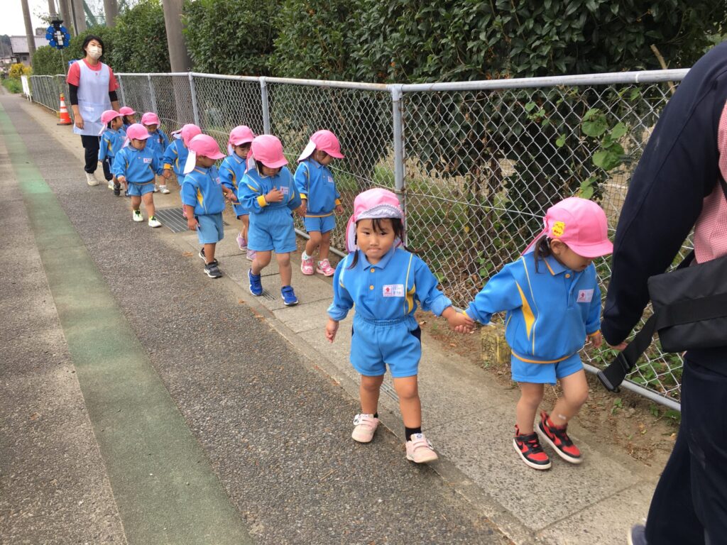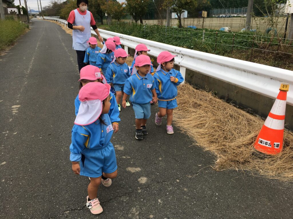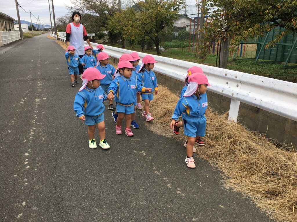 お友達と手を繋いで歩くことがとても上手になってきたすみれ組さんです。