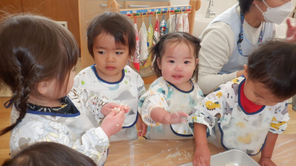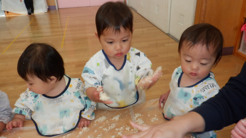 久しぶりにパン粉で遊びました。感触を嫌がらずに、握ったりこねたりしてたくさん遊べました。