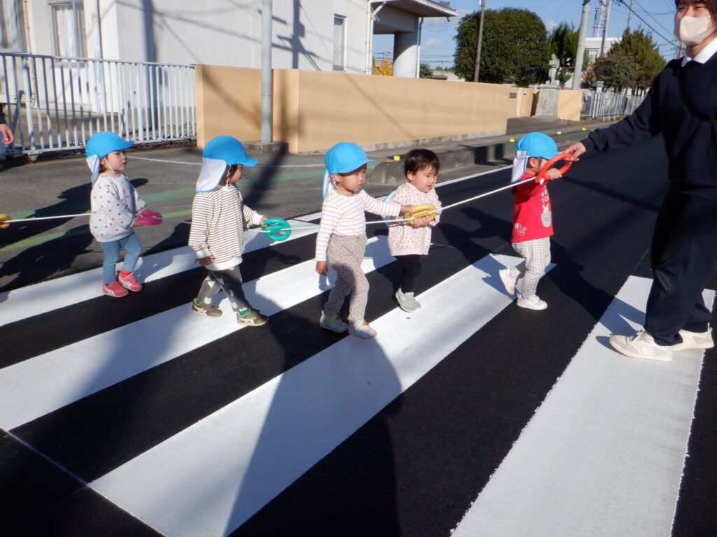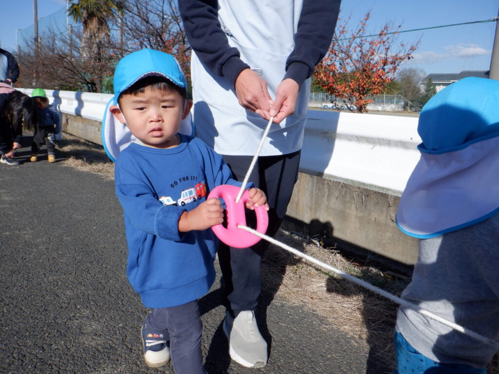 初めて食育館までお散歩に行きました!いつもよりかなり長い距離でしたが、お散歩ロープにつかまって行ってくることが出来ました♪