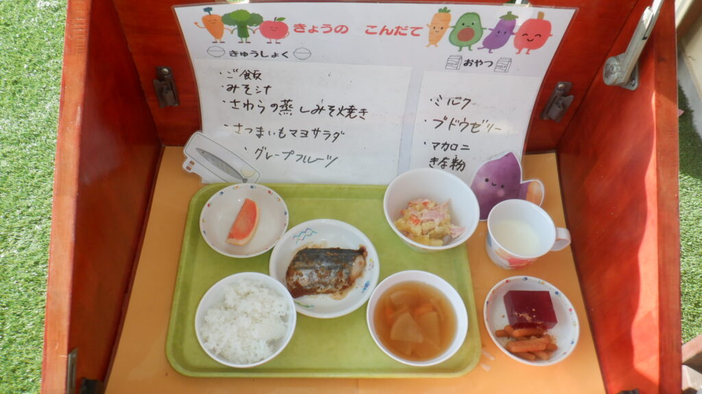 ・ミルク ・ブドウゼリー ・マカロニきな粉