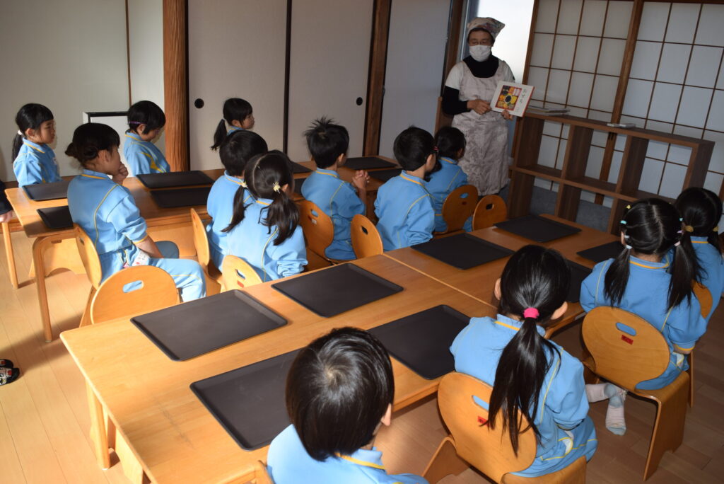 一の重・二の重・三の重のそれぞれの食材の意味を絵本とお話から学び、実際におせちを食べる体験にワクワク!ドキドキ!!