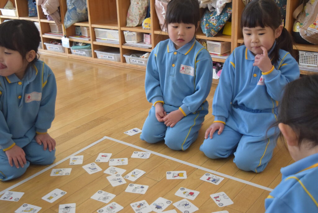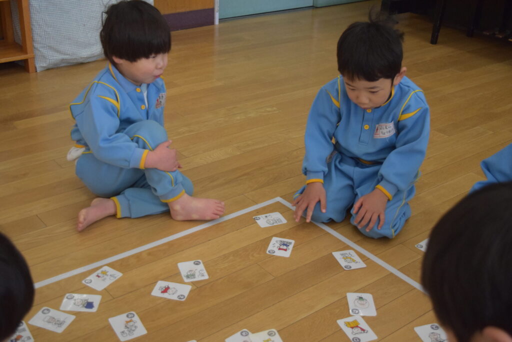 1月26日にカルタ大会がありました! 日々の活動の中でも楽しくカルタに取り組んでいて、カルタ大会も楽しく行うことができました。取るときには「はい!」と大きなお返事が聞こえ、1人1枚以上は取ることができ、とても嬉しそうなさくら組さんでした。真剣に読み札を聞いて取る姿もかっこよかったです♪