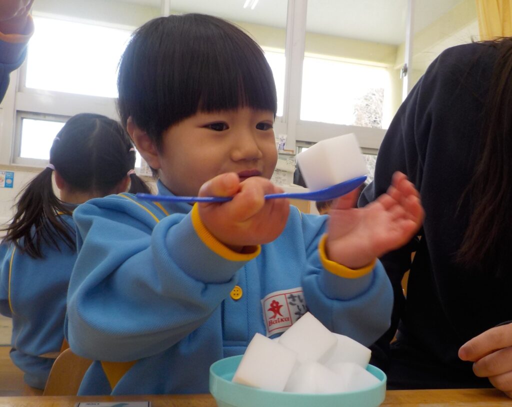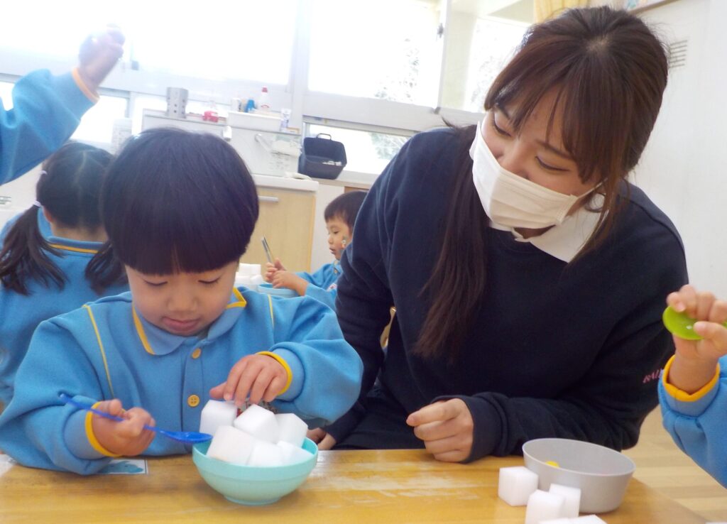 たくさん掬うことができると、とても嬉しそうに「できた!」「もういっかい!」と、繰り返し楽しんで遊ぶ子ども達です。