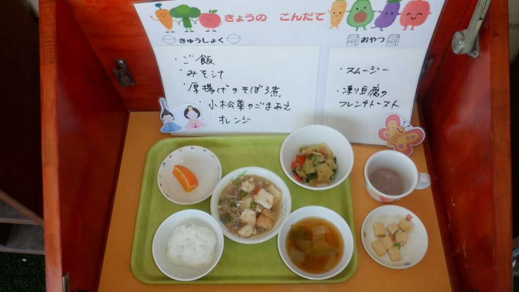 ・厚揚げのそぼろ煮 ・小松菜のごまあえ