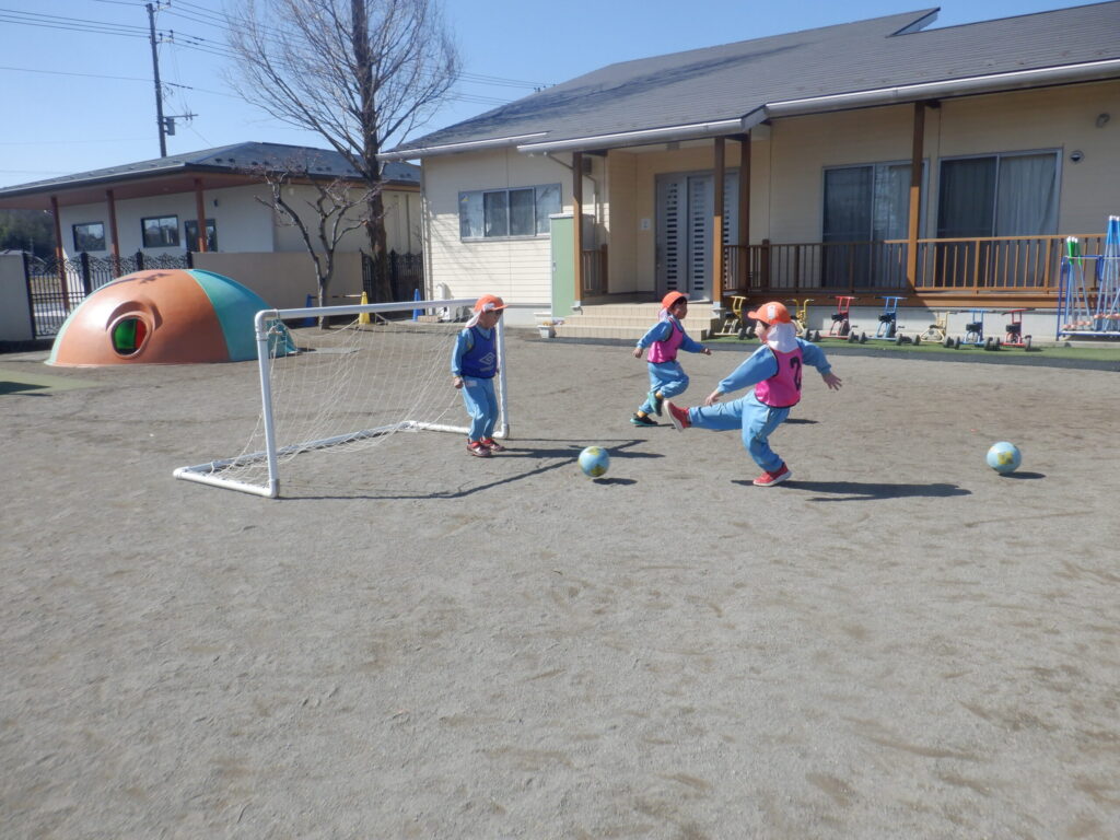 最後の試合は3チームにわかれて行い、とても白熱した試合になり、勝ったり、負けたり・・・、たくさん楽しんで身体を動かすことが出来ました。