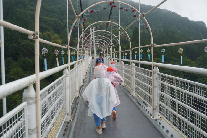 到着したら雨が・・・・・。雨具を着てスカイブリッジを渡り洞窟の不二洞まで歩きました。