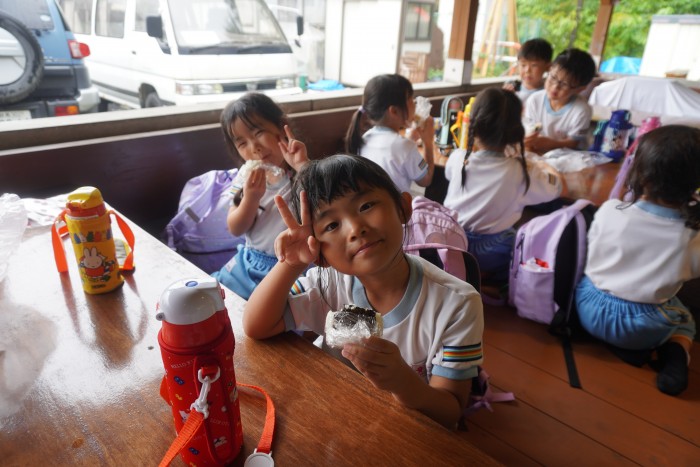 ご家族の方が作ってくれたおにぎりは格別おいしい!!「おいしいよ~」と嬉しそうに見せてくれます♪
