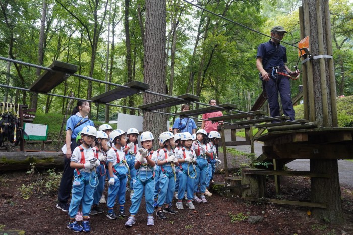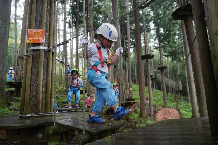 ちょっと小雨が降りましたが、フォレストアドベンチャーにチャレンジ!!ハーネスをつけて、とても楽しそうに遊んでいました。