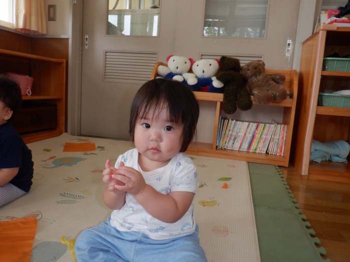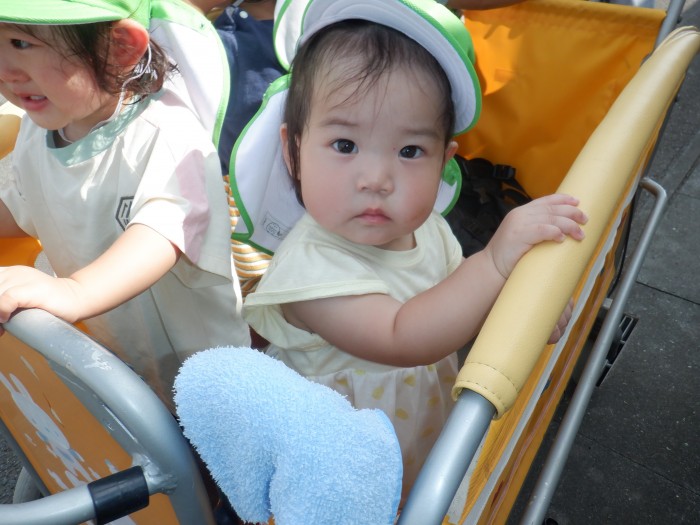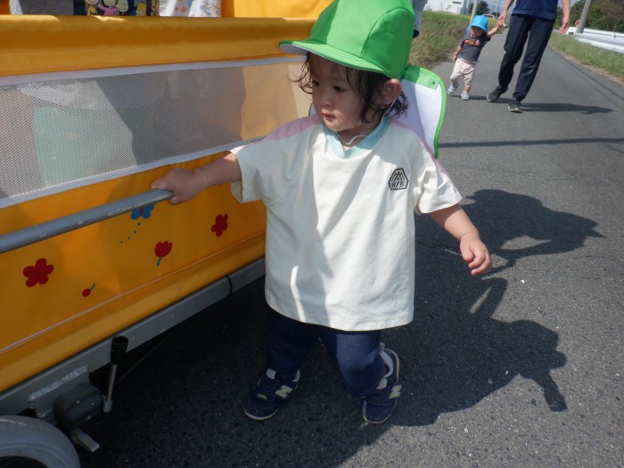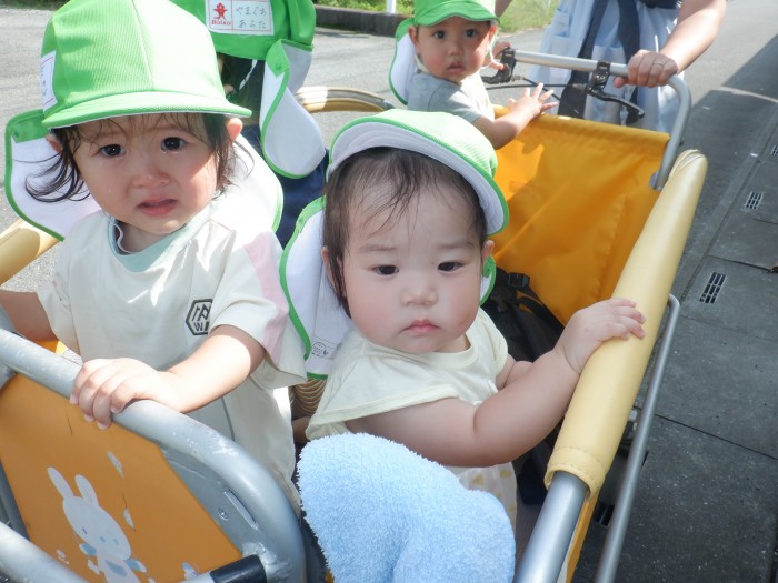 久しぶりにお散歩に行きました。先生におんぶされたり、お散歩カーにつかまり立ちをしたりしながら行ってきました。歩ける子は帰り道少しだけ歩いてみました。嫌がらずに楽しく歩くことができました。