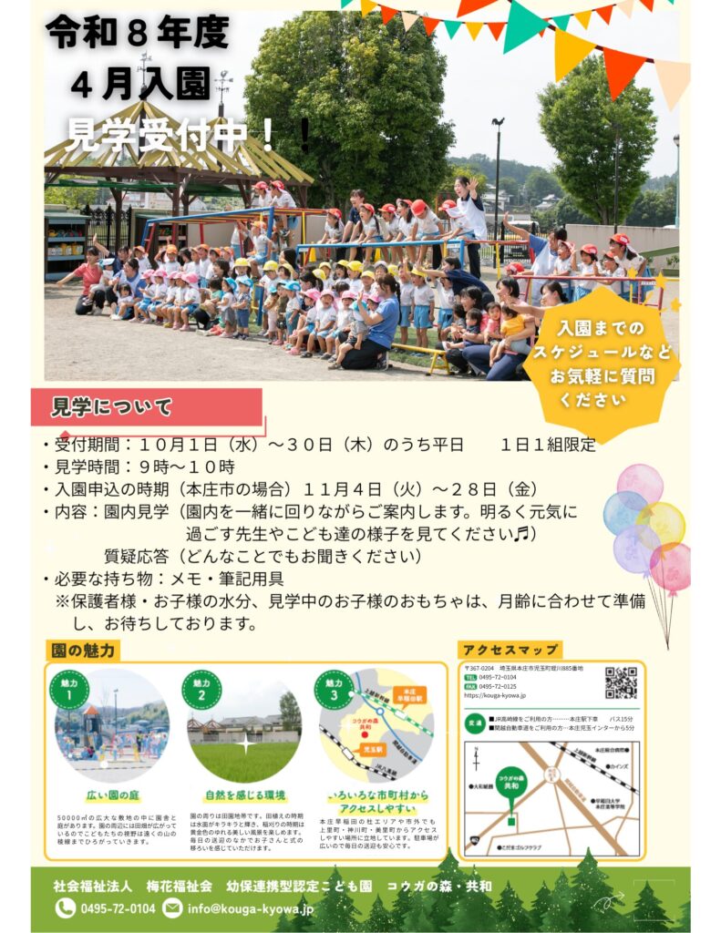 令和8年度 4月入園見学会のお知らせ